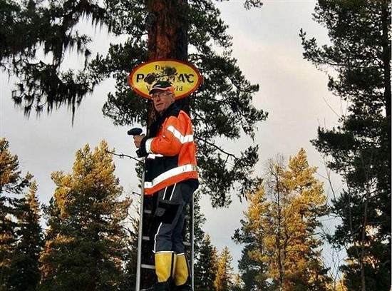 Strax före jul 2013 fick Torsten Holmlund i Västanbäck reda på att Granen med Pommacskylten blåst omkull. Som Sollefteåbo med intresse för bygden och dess historia var det ett förhållande som han inte kunde acceptera. Han kontaktade därför sin bror Lennart i Östgranvåg. Även han brinnande för bygd och historia. Bröderna beslöt att redan nästa dag åka ned till Pommacsvägskälet och sätta upp skylten. Vilket de också gjorde.